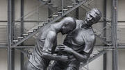 Le «coup de boule» de Zidane en sculpture géante Le fameux coup de tête du footballeur donné lors de la finale de la Coupe du monde de football en 2006 est devenu une oeuvre d'art monumentale exposée devant le centre Pompidou à Paris.